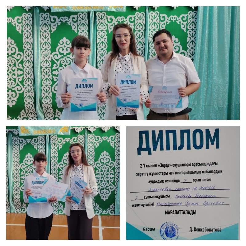 6 сынып оқушысы В. Чинякова "Зерде" байқауының аудандық кезеңіне қатысты. "Ауа және топырақ: Алексеевский-доломит кенішінің аймақтың экожүйесіне әсері"атты жұмыс ұсынылды. Жетекшісі Р. С. Джамбутинов бұл жоба"Экология" секциясында 1 орын алды