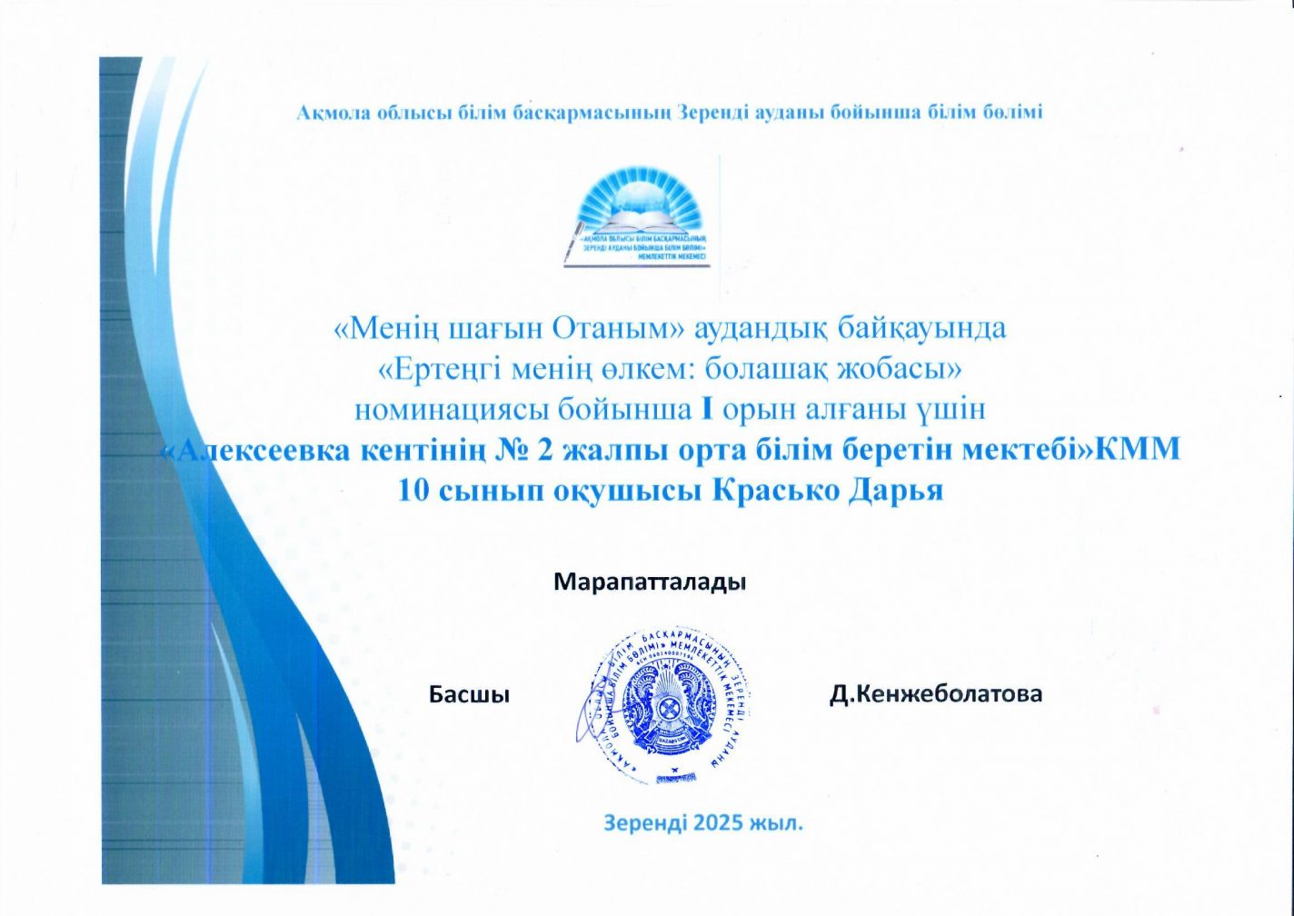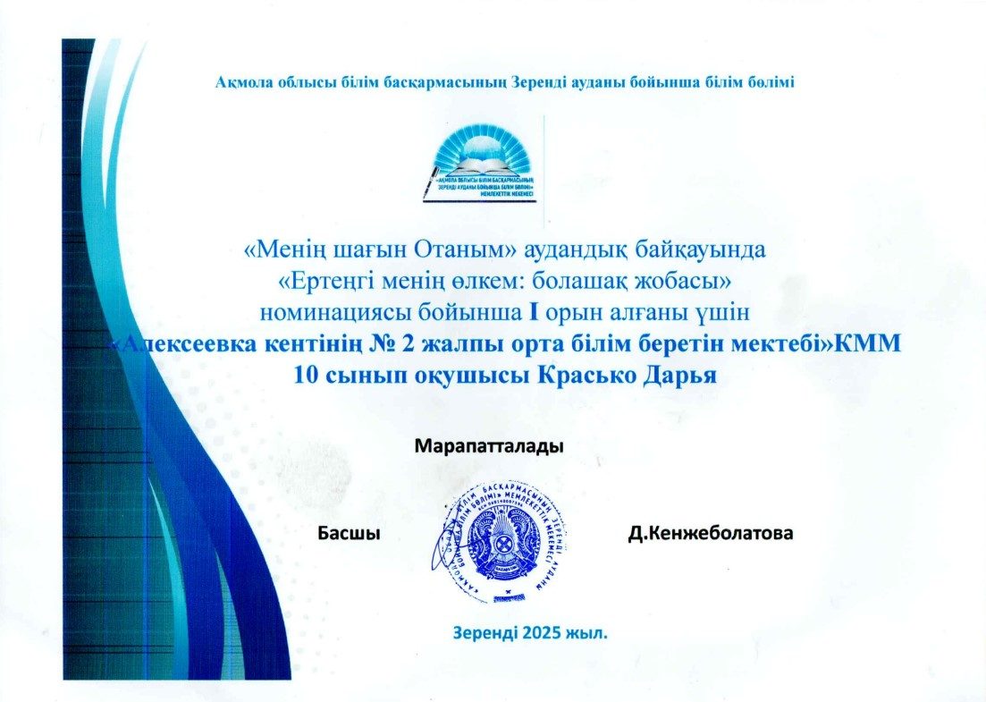 «Ақмола облысы білім басқармасының Зеренді ауданы бойынша білім бөлімі Алексеевка кентінің № 2 жалпы білім беретін мектебі» коммуналдық мемлекеттік мекемесі